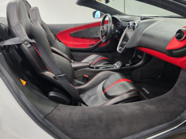This 2019 McLaren 570S Spider is featured in Silica White with Jet Black/Apex Red interior. Options include: MSO Defined Titanium SuperSports Exhaust, Red Calipers, Silver 10 Spoke Cast Alloy Wheels, NOSE LIFT, Carbon Fiber Interior Upgrade, Luxury Pack, Apex Red Nappa Sport Leather Interior Trim, Carbon Fiber Exterior Pack 1 Sirius Satellite Radio, Bowers and Wilkins 12 Speaker Audio System and Special Silica White Exterior Paint Color. Passed the McLaren inspection process with extended warranty options available. **Only an authorized McLaren dealer can offer this exclusive benefit.**. McLaren Palm Beach- South Florida's Authorized McLaren retailer. Visit McLarenPalmBeach.com 24/7 for our complete new and pre-owned luxury listings.